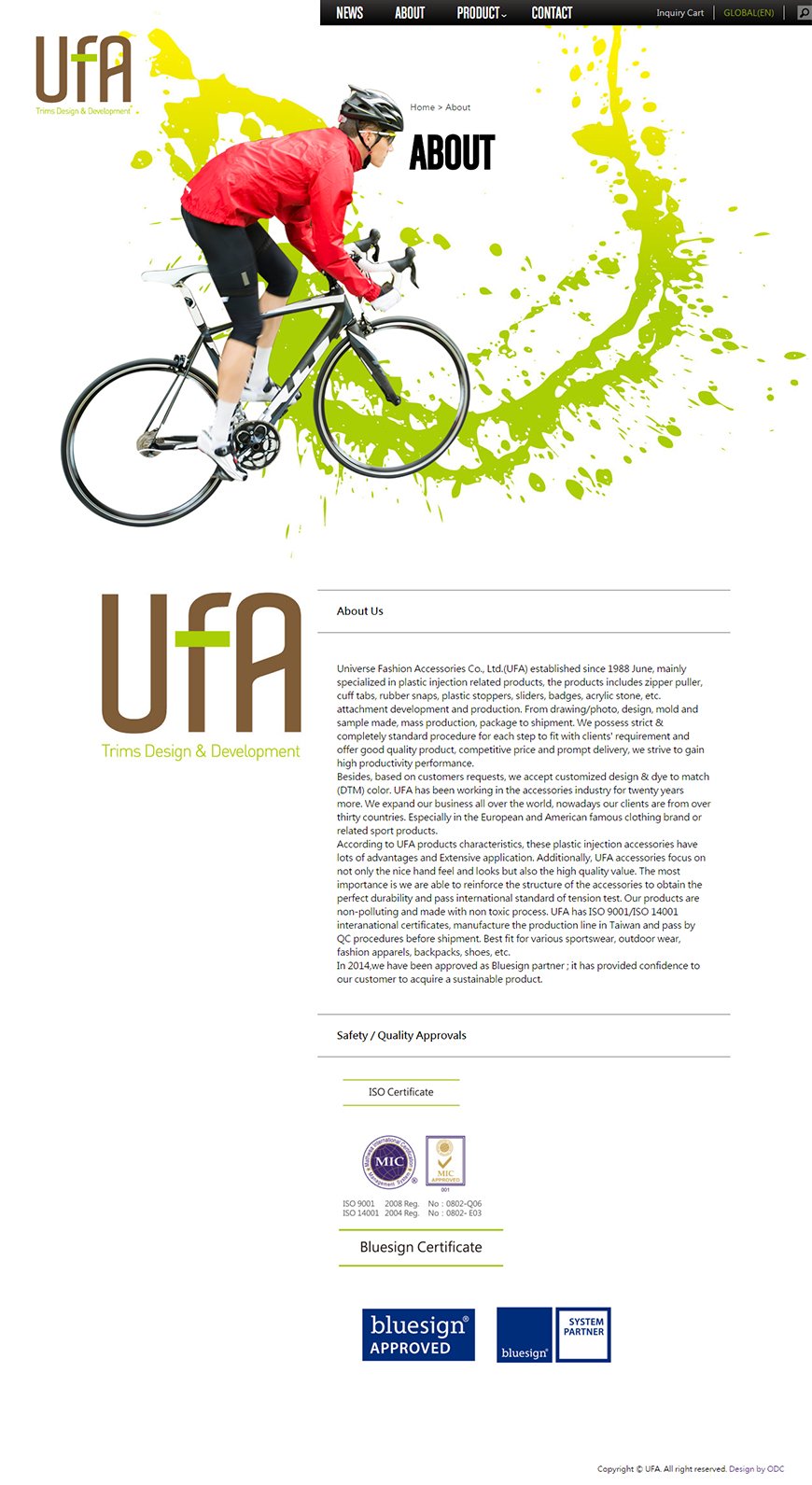 UFA億錦國際成立於1988年,主要從事塑膠射出相關產品,專業生產機能性服飾配料開發及生產,透過模具繪圖、設計、製造到生產、包裝及出貨等高標準的作業流程,達到無可取代的生產設計公司,在網站的從新規劃及整合後,讓企業的專業形象更為提升,網站應用以中、英文的切換讓企業能更快速的與國際接軌,強化產業市場的競爭力。