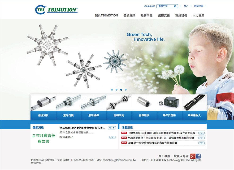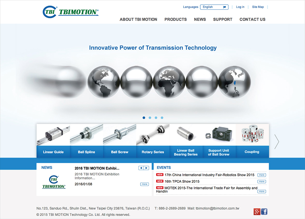 全球傳動科技股份有限公司(TBI MOTION) 為台灣傳動元件專業製造廠,TBI MOTION掌握關鍵核心技術,專注創新研發與設計,擁有多項產品設計專利並且通過ISO9001認證,1986年成立至今,經銷營業據點分佈全球,廣獲各國客戶的肯定。