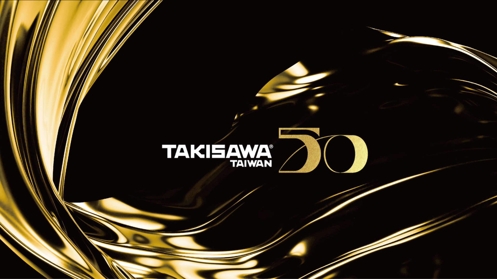 50週年是台灣瀧澤值得紀念的歲月里程碑,主視覺使用漸層金色搭配黑色襯底,呈現低調奢華之感。 延伸設計採用了液態金屬作為背景,讓靜態視覺擁有動態般的流暢線條。